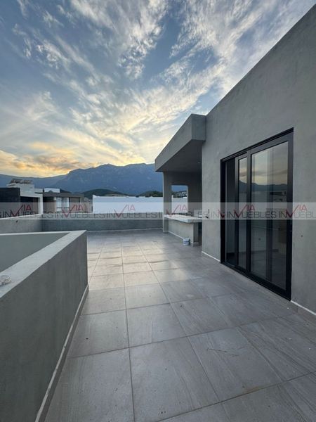 Hermosa casa NUEVA en venta en privada a 100 mts de carretera nacional y a la altura de El Barro NL. La privada cuenta con pet park, casa club con alberca, asadores, juegos infantiles y seguridad 24/7.