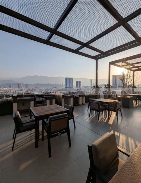 La torre tiene amenidades como alberca, terraza con asadores, sala Lounge, gimnasio, área de cowork, ludoteca, juegos infantiles. Seguridad 24/7 y acceso controlado.
