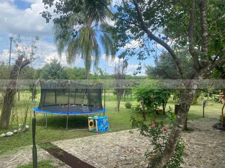 Hermosa Quinta situada en zona de Montemorelos, a tan solo 10 min de carretera de Montemorelos, en Colonia Terreros, disfruta de la tranquilidad y belleza al natural que tiene esta Quinta Campestre, con 840mts de construcción, cuenta con 1 casa de 18x12 mts y 2da casa de servicio de 4x8mts, alberca instalada medidas 7x9 mts, Palapa 6x15mts y bodega 25x20mts.