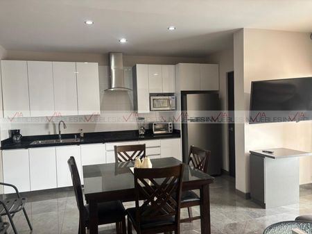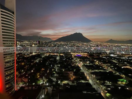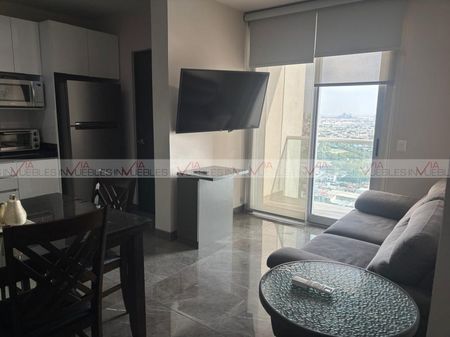 Departamento en renta Torre Puntacero frente a Cintermex en el Centro de Monterrey de 2 recámaras, completamente amueblado y equipado. Cuenta con cocina, comedor, cuarto lavado, recámara principal con closet vestidor, 2 baños completos, 2 cajones estacionamiento. Acceso privado al condominio, la plaza cuenta con centro comercial, amenidades, food court, oficinas y hotel. Incluye Mantenimiento. Id Gvia: 118119