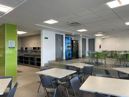 Oficina en edificio estratégicamente ubicado y diseñado para ser un centro corporativo. Cuenta con amenidades como sala de juntas, sala de capacitación, sala tipo auditorio y sala de consejo. Terraza y áreas verdes. Comedor general con capacidad para más de 240 personas.
