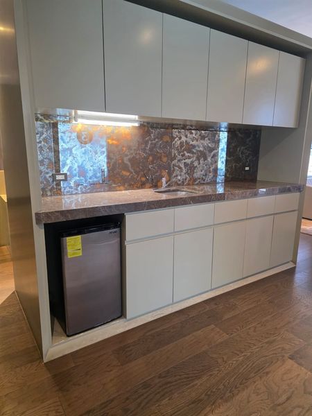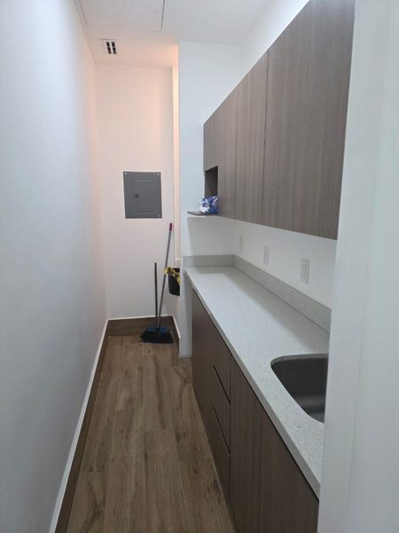 Cocineta con espacio a frigobar, micro y tarja.