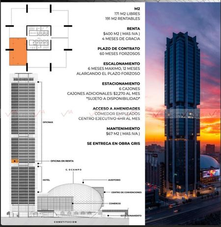 ¡No pierdas la oportunidad de ubicar tu negocio en uno de los edificios más prestigiosos de la ciudad! Id Gvia: 113409