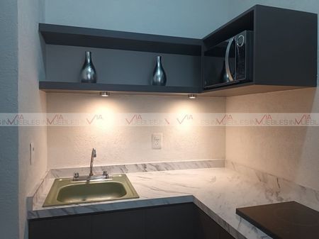 La cocina integral es un espacio funcional y bien equipado que incluye un refrigerador, una parrilla de inducción para cocinar de forma segura y eficiente, y un microondas para mayor conveniencia. Ya sea que desees preparar una comida casera o simplemente calentar algo rápido, la cocina tiene todo lo que necesitas. Además de las comodidades en el interior del departamento, los residentes también pueden disfrutar de las instalaciones comunes del residencial, que incluyen una hermosa alberca con palapa y asador para reuniones al aire libre, áreas verdes, juegos infantiles y más. La seguridad es una prioridad en Palmas Turquesa Residencial, con un acceso controlado las 24 horas del día, los 7 días de la semana y un reglament Id Gvia: 111618