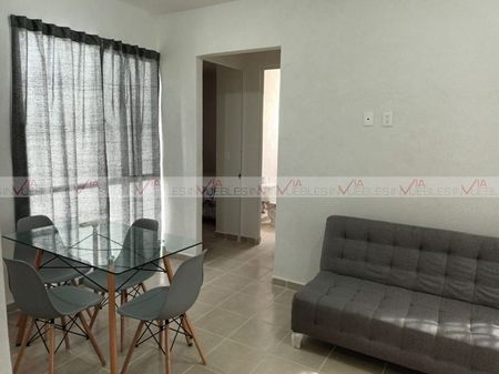 Departamento amueblado frente a la alberca en Palmas Turquesa Residencial es un encantador espacio que ofrece comodidad y conveniencia para aquellos que buscan un lugar acogedor para quedarse. Con una ubicación privilegiada frente a la alberca, los residentes pueden disfrutar de hermosas vistas y la relajante atmósfera que ofrece esta área común. Las 2 recámaras del departamento están cuidadosamente equipadas para garantizar una estancia confortable. Cada una cuenta con un balcón privado, camas una tamaño Queen y la otra con cama individual sábanas y cubre colchones, closets espaciosos y cortinas para mayor privacidad. El baño está equipado con accesorios modernos, un espejo elegante y una cortina para mayor comodidad.