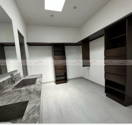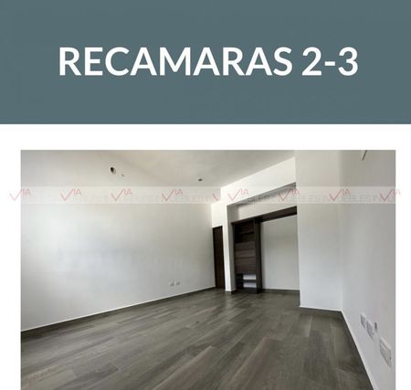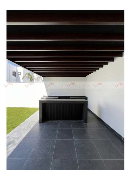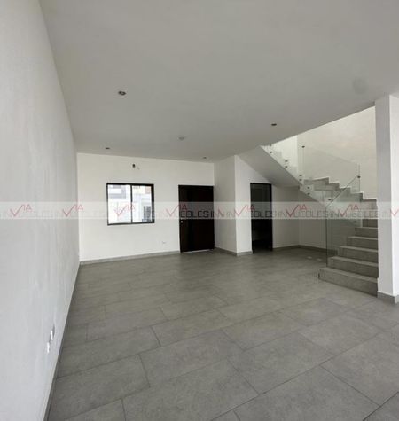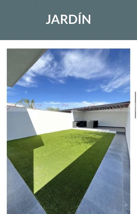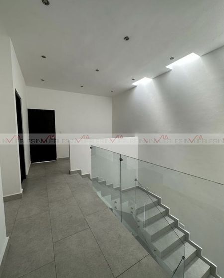 Hermosa Residencia contemporánea con acabados de lujo, ubicada cerca de centros comerciales a una cuadra de la Carretera Nacional. Consta de 2 plantas. Planta Alta: con 3 recámaras, cada una con su baño completo. La recámara principal tiene vestidor, mientras las dos secundarias clóset de diseño, lavandería y Estancia de TV. Planta Baja: consta de recibidor, sala, comedor, cocina equipada con cuarzo, parrilla y campana. Cochera para dos autos y área de Jardín con césped artificial, área de asador techada con barra y contra barra de granito. Vigilancia 24-7. Acceso Controlado. Id Gvia: 114361