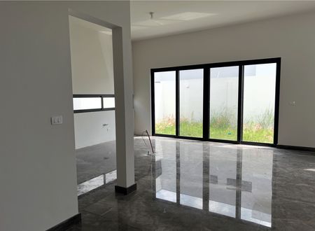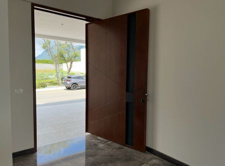 Cochera doble, sala comedor, cocina, recamara de visitas con baño vestidor, medio baño y jardín exterior.
