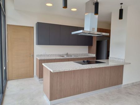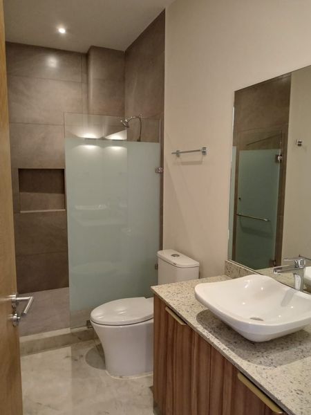 Departamento nuevo, completamente equipado, 3 recámaras, 3 1/2 baños completos, family room, balcón, roof garden, centro de lavado, climas, persianas, electrodomésticos, 1 bodega, alberca, cancha de padel, palapas, sala de juegos, gimnasio, salón polivalente, internet, seguridad 24 hrs.