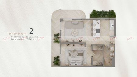 -1 Recámara: 66.65 m2