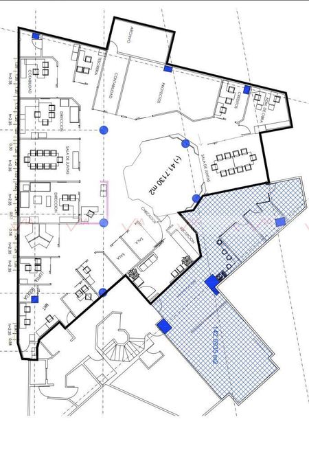El Local Cuenta con Area de Recepción; 15 Privados y Areas Comunes con 2 Medios Baños Adicionales a los Baños de la Plaza. Cuenta con Cajones de Estacionamiento de la Propia Plaza y Seguridad 24/7.