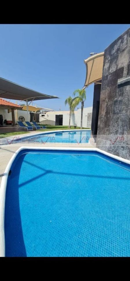 Además de las albercas, cuenta con amplio jardín, boiler, gas, luz, agua, asadores, circuito cerrado y bodega. Id Gvia: 116301