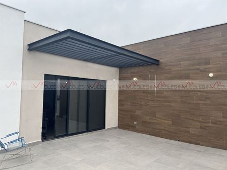 Hermosa casa con antigüedad de 3 años en colonia privada, seguridad 24/7, con terreno excedente. Consta de tres plantas, una cochera para tres carros con portón eléctrico, área social amplia con ventanal, una cocina integral con isla, patio con alberca. Segunda planta cuanta con tres recámaras cada una con baño completo y walking closet. Tercera planta es un área social con terraza, medio baño y cuarto de lavandería. La casa se encuentra ubicada en esquina por lo que facilita el estacionamiento para invitados, permanece con los muebles fijos, iluminación, minisplit y persianas. Id Gvia: 115012