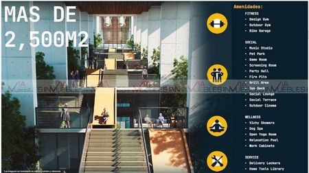 Con sus más de 20 exclusivas amenidades, en más de 2,500 m2. Además cuenta con una planta baja comercial de 1,300 m2 .