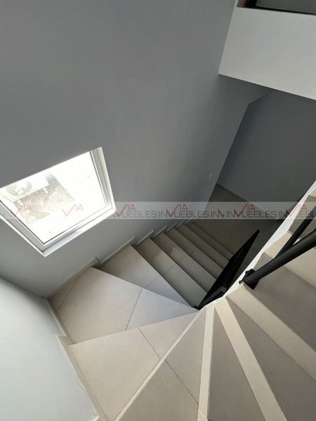 Primer planta: sala, comedor, cocina equipada, cuarto de lavado, 1/2 baño, patio, cochera para dos autos.