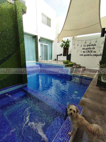 Amenidades destacadas: alberca privada, área de asador, paneles solares, abanicos de techo