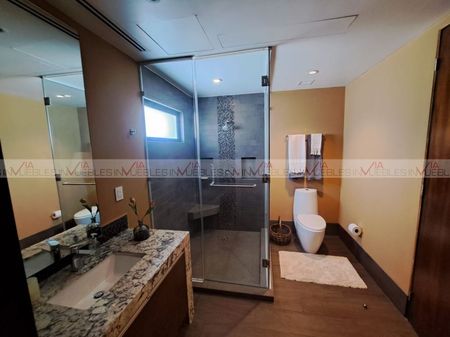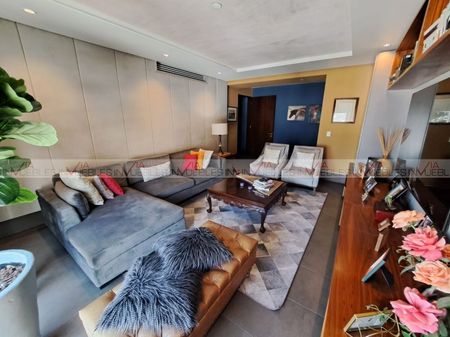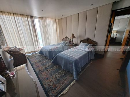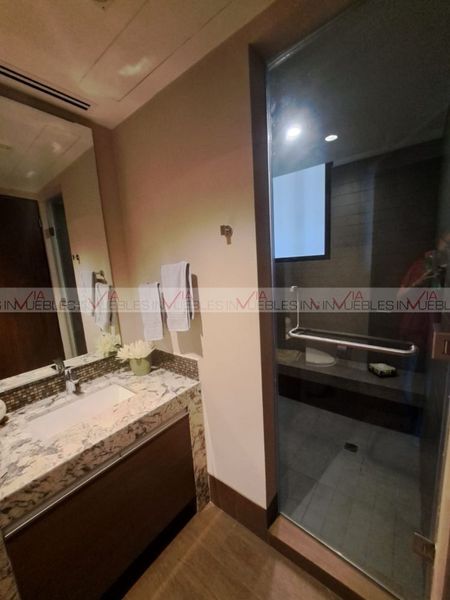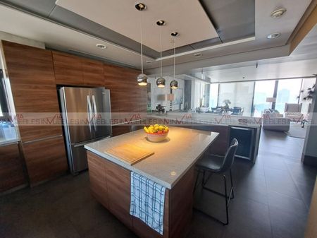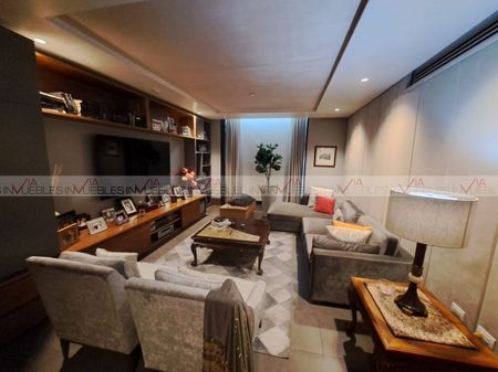 Departamento exclusivo de lujo, con las mejores vistas. Totalmente equipado con acabados de lujo. Cuenta con 3 recámaras con baño y walk in closet cada una. Área de sala-comedor muy amplia con cómoda terraza con vista a la ciudad. Cuenta con hermosa cocina totalmente equipada con acabados de lujo. Cuarto de cocina con baño, cuarto de lavado, bodegas y closets espaciosos. Cuenta con amenidades de lujo como Salón de Eventos con cocina, Biblioteca, Terrazas, Alberca, Vapor, Área para mascotas, Spa, Ludoteca, Asadores y hermosos jardines con vistas privilegiadas a toda la ciudad. Ubicada en Valle Oriente con acceso seguro y privado y de fácil acceso a las principales vías rápidas. Id Gvia: 112273