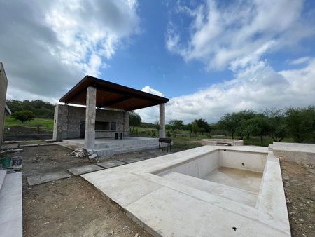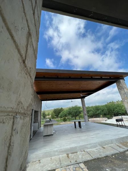 Hermosa quinta campestre con amplísima terraza, alberca, asador y fogatero. Inspirada y construida con materiales y colores del mágico entorno rodeado de montañas de senderismo y bicicleta, casa club, canchas de padel, áreas verdes de pic-nic, granjas, huertos y palapas con asadores, con vistas panorámicas ya que todos los servicios son subterráneos. Acceso y vigilancia controlada.