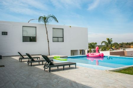 Quinta llave en mano, lista para disfrutar!! Cuenta con alberca tipo infinity con área de bar integrada, amplio jardín, palapa techada y equipada con asador. A sólo 10 minutos del Restaurante El Pariente. Construcción de 253 mts en un nivel con 2 recámaras, 3 baños completos, cocina integrada con barra desayunadora de granito, amplia sala/ comedor. Totalmente bardeada dentro de privada. La propiedad se vende amueblada y equipada.