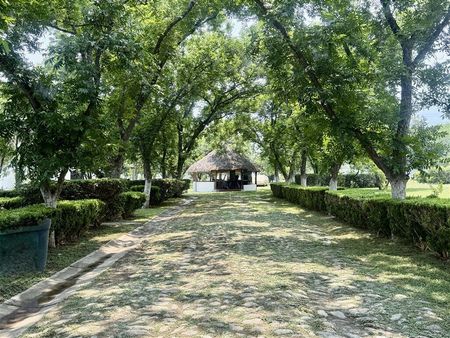 La entrada te recibe con un pasillo rodeado de naturaleza viva,colores verdes intensos,arboles frutales como nogales en produccion,naranjos,perales,ciruelos,nisperos y una atmosfera de paz inigualable.
