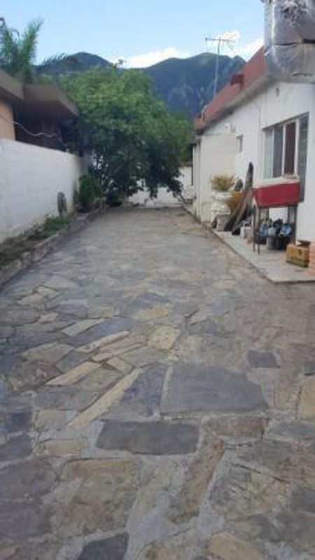 Quinta con excelente ubicación a 1 cuadra de la carretera nacional, 900 m2 de terreno, 323 m2 de construcción en casa de 1 planta, 3 recamaras, 3 1/2 baños, cochera para 4, palapa, para remodelar o demoler, cuenta con todos los servicios (drenaje con fosa séptica) JP ID 8220