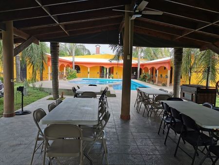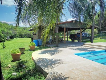 Alberca de 13 x 7 con jacuzzi, Palapa con chimenea, Asador, juegos infantiles, 2 pozos de agua equipados, 2 fosas sépticas, arboles frutales y de ornato