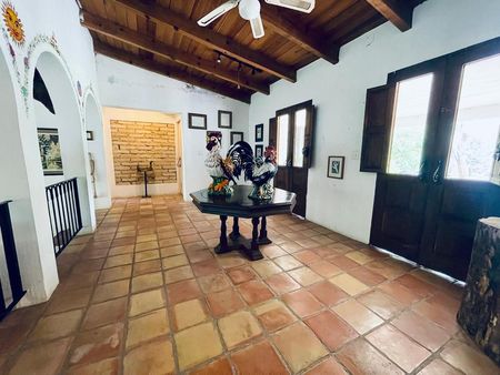 Encantadora Quinta, estilo rústico en Santiago N.L. Ubicada a pocos minutos de la Plaza Principal y de la Presa de La Boca, esta acogedora propiedad ofrece 2 recámaras con sus baños, amplio jardín, terraza y área de asador. Destaca sus cálidos acabados en losa de terracota, techos de madera y muros de adobe.