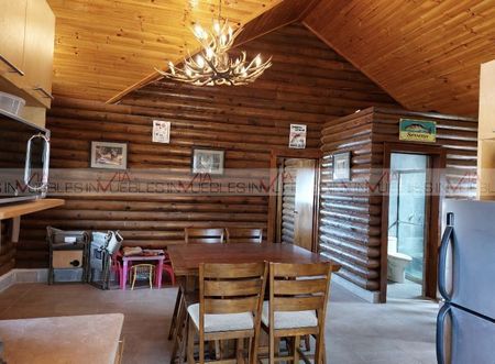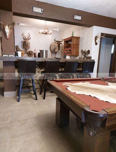 Tiene una cabaña, zona de descanso, mesa de billar y bar, área de tv.