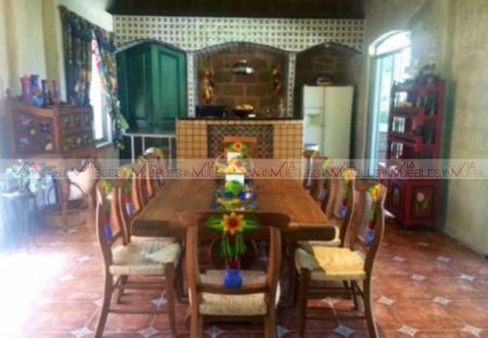 Hermosa Quinta en el Cercado, municipio de Santiago, N.L. Equipada completamente con alberca, cancha de basket o voleiball, 3 habitaciones, climas, calefaccion, comedor, sala de tv, palapa con asador y dos baños completos. Jardines increibles. Terreno 6714.56m2/ Cosntruccion 700m2/ estacionamiento y banquetas 700m2/jardines 2000m2/ alberca tamaño 6 x 12. Cuenta con contrato de luz, tanque de gas, paneles solares, caldera para alberca y contrato de telefono e internet. Pozo de agua con ductos para la casa. Boiler. Id Gvia: 104923