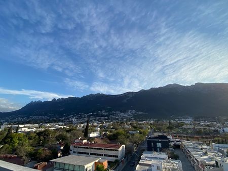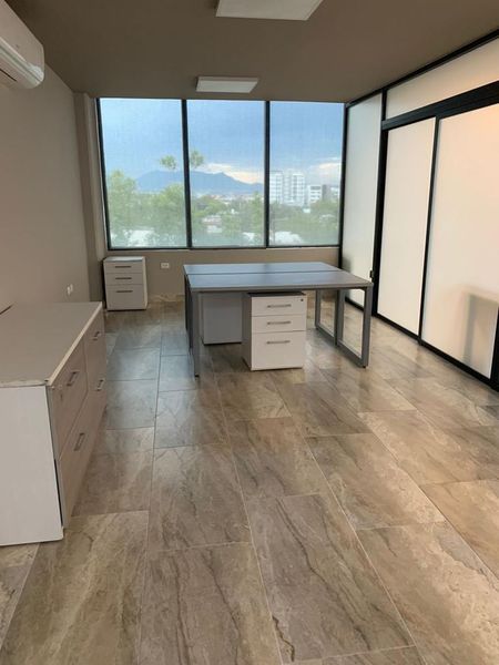 Oficina equipada a una cuadra de Vasconcelos en edificio moderno. Cuenta con amenidades como sala de juntas, terraza y comedor, baño privado, 2 lugares de estacionamiento y clima central.