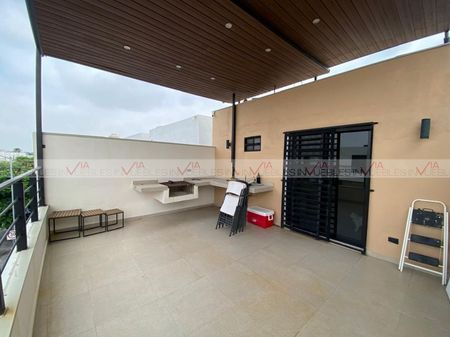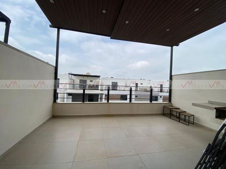 Disfruta de amplios espacios sociales con una terrazas en la segunda planta y una espectacular segunda terraza en la tercera planta con área de estancia y asador, ideal para momentos especiales y reuniones al aire libre. Además, cuenta con una cochera para dos autos. Equipada con Cocina Integral, roperias, minisplits. La colonia cuenta con parque, alberca, cancha, casa club y gimnasio equipado. Ubicada en una zona segura y de alta demanda, esta casa ofrece comodidad, estilo y un entorno residencial privilegiado. ¡No dejes pasar esta oportunidad! Id Gvia: 114490