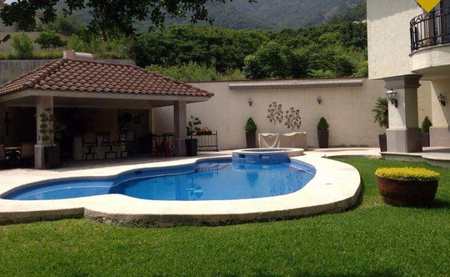 La residencia cuenta con recibidor con una cúpula espectacular, biblioteca privada con bar, amplia area social con chimenea, techos de doble altura, con salida a la terraza que esta junto al amplísimo jardin que tiene alberca, jacuzzi y palapa con asador para sus reuniones privadas. Area de comedor con mucha iluminación, baño de visitas, family room, antecomedor.