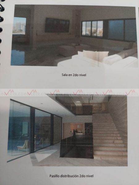 La casa de tres plantas y con doble altura, cuenta con 3 recámaras con baño completo y walking closet en cada una, la principal con hidrotina en baño, y área de oficina en recámara; estancia y recibidor, cochera para 3 autos bajo techo, alberca, área social.