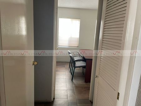 Amplia oficina equipado con mobiliario, se encuentra en el segundo piso del edificio, consta de una planta con 2 amplias recámaras compartiendo un baño completo con cuanto de clóset o bodega, con área abierta para acondicionar sala, comedor y recibidor y lavandería o cuadro de servicio , cocina integral con despensa, 1 1/2 baño. Con una terraza al entrar el departamento.