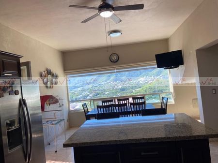 Hermosa residencia con expectaculares vistas panorámicas, ubicada en carretera nacional por Sierra Alta, cerca de centros comerciales, supermercados, hospitales y colegios de prestigio, completamente equipada, recámara con baño completo en la planta baja cocineta con isla, la propiedad cuenta con barda perimetral, rampa y muros de contención y un amplio patio de 200m2, requiere algo de mantenimiento y terminaciones, excelente oportunidad.