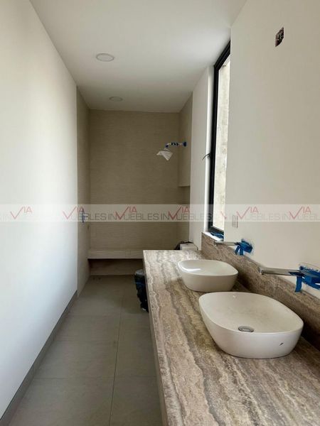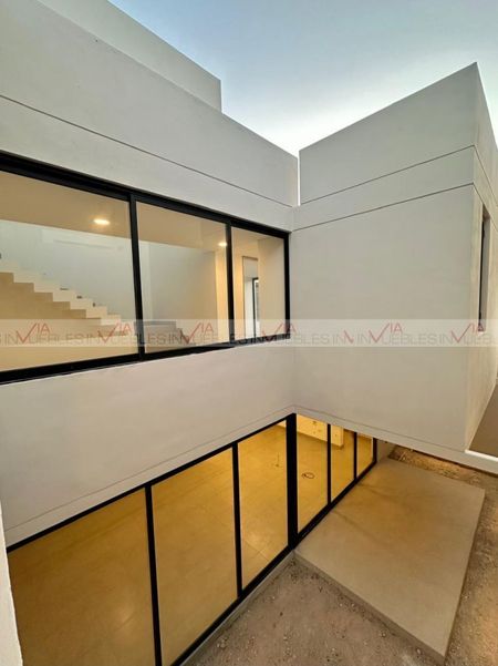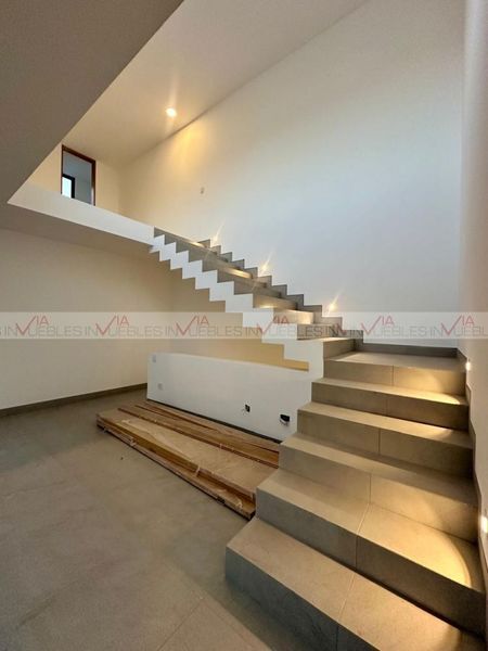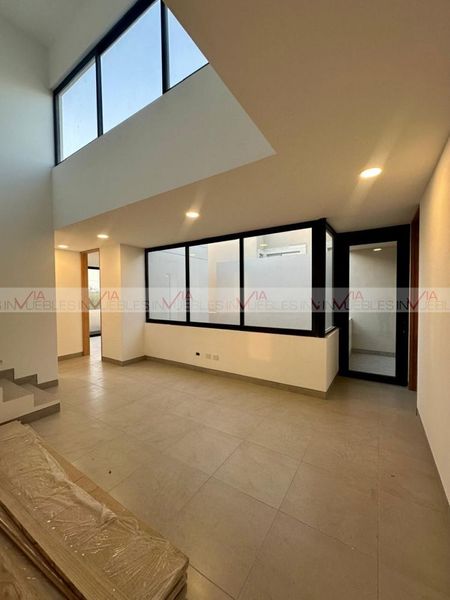 Hermosa casa nueva en Rinconada Colonial en Apodaca, planta baja con acceso principal con doble altura , sala , comedor , cocina con vistas y salidas directo al jardín y terraza techada, cochera doble, lavandería, 1/2 baño y bodega