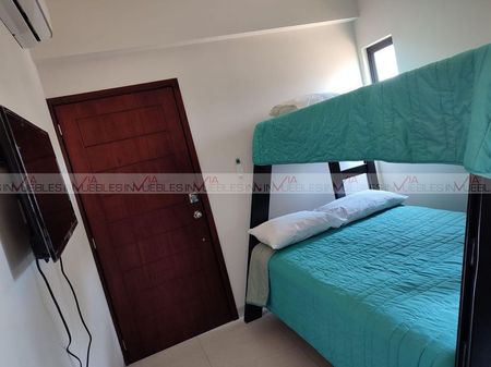 Hermoso departamento en la zona dorada de Mazatlán, con excelente ubicación, a unos metros de la playa. Se encuentra completamente amueblado y equipado, Planta baja tiene medio baño, cocina integral equipada con parrilla, campana, microondas, comedor para 5 personas, sala con sofá cama, Smart TV y un balcón con vista a la alberca. Planta alta, tiene recámara principal con closet, cama matrimonial, balcón con vista a la alberca, tiene cuarto de lavado, recámara secundaria con litera matrimonial/individual y closet,1 baño completo para compartir. El edificio cuenta con amenidades como alberca, roof Garden con asador, estacionamiento techado con portón eléctrico, elevador y circuito cerrado.