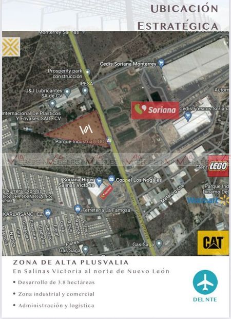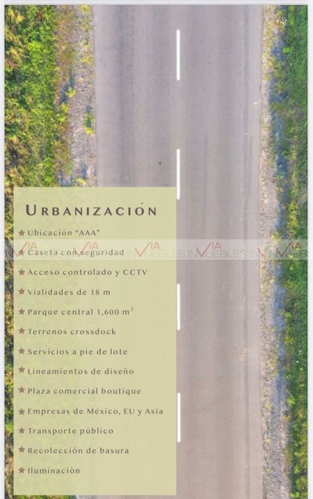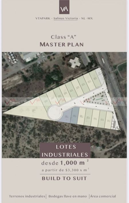 Lotes industriales dentro de Vta Park: es un fraccionamiento privado class "A" con 17 lotes industriales y locales comerciales ubicado sobre la carretera a Salinas Victoria frente al cedis de Soriana Monterrey, con zona habitacional a 600 m, cerca del Interpuerto, aeropuerto del norte y de puentes fronterizos.
