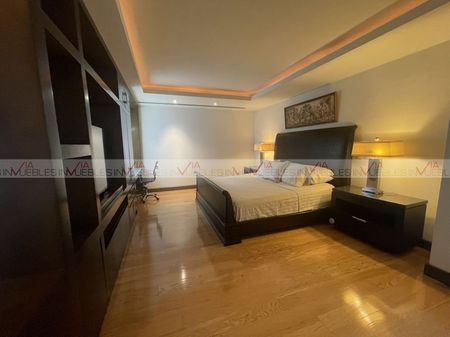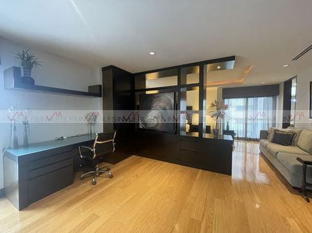 Departamento en San Pedro Garza García en Residencial San Francisco. Muy cerca de principales avenidas y colegios. Departamento de amplios espacios de 351 m2 con muy bonitos acabados y excelente iluminación natural. Consta de 2 recamaras con opción a tercera recamara, Cada una con walking closet y baño. Sala y comedor con terraza, área de bar, sala de TV, cocina amplia con lavandería y cuarto de servicio, terraza en área social. Único departamento con terraza arriba privada de 102 m2 con vista espectacular, barra, baño y bodega La torre es de 6 pisos con solo 12 departamentos (dos por piso) cuenta con 3 cajones de estacionamiento, bodega, alberca, salón de eventos, gimnasio, hermosos jardines y terraza techada con asadores. Cuenta con caseta con guardia. Id Gvia: 114241