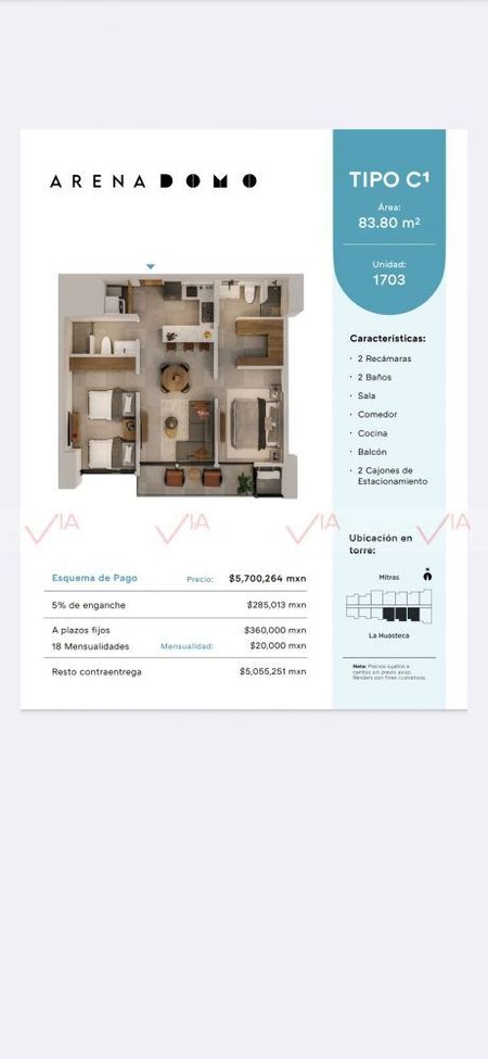 Hermoso departamento en venta (preventa) se entrega marzo o abril de 2026 cuenta con 83.80 metros de construcción, dos recamaras, dos baños completos, sala, comedor, cocina, balcón, dos cajones de estacionamiento, excelentes vistas, muchas amenidades, muy buena ubicación son 200 departamentos en torre y 18 niveles vale la pena conocerlo te va a encantar agenda cita. Id Gvia: 118438