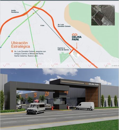 En venta 10 bodegas, que se están construyendo. Dentro de nuevo Parque Industrial en Santa Catarina. El parque industrial llamado Delma Park, un proyecto de 45,737 mts2 ubicado sobre la av. Donaldo Colosio, Santa Catarina. Ofrece excelente conectividad con la zona industrial de Santa Catarina y acceso directo al libramiento hacia Colombia-Nuevo Leon, Reynosa y Matamoros.