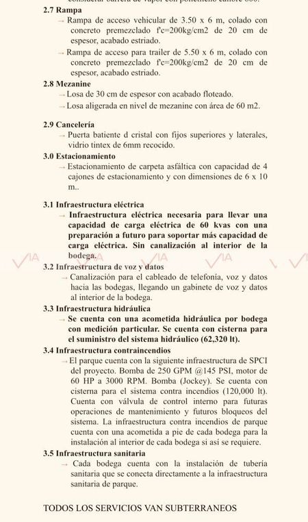 Estas bodegas disponibles varían en tamaño desde 1000 metros hasta 1,400 metros, lo que proporciona opciones para diferentes tipos de empresas y necesidades. Tendrán un control de acceso y regimen de condominio. El metro cuadrado esta en $14,850 pesos. Aprovecha esta oportunidad de adquirir tu bodega! Id Gvia: 118002