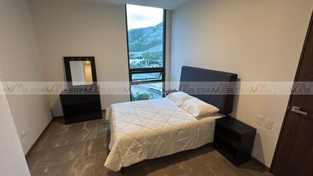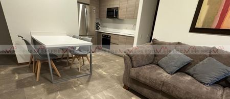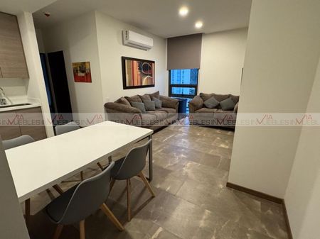 Departamento para estrenar en Torre Kanat, de 74 m2 en piso 6. Totalmente equipado y amueblado, de dos recamaras, principal con walking-closet y secundaria con closet de pared y cama canguro, 2 baños completos, incluye bodega y dos cajones de estacionamiento. Amplia área social que con acogedora sala y persianas que le dan un acabado de lujo y confort. Cocina equipada con barra de cuarcita, parrilla, horno, refrigerador y microondas-campana. Incluye area de lavado, con moderno centro de lavado, minisplits inverter en todas las áreas y boiler de paso. Torre nueva, con exclusivas amenidades: Salon de eventos, Arcade, Lobby, Business Center, Centro Culinario, Lounge, Sport Bar, Social Room, Gimnasio interior, Juegos Infantiles, Pies Descalzos, Área de Descanso, Área de Yoga, Alberca, Asadores, Fogateros, Dog Park y áreas verdes. Ubicado en Valle Poniente, zona de crecimiento y alta plusvalía, cerca de Prepa Tec, Universidad de Monterrey, Consulado Americano, ASFM, centros comerciales y de recreación y a solo 5 minutos de SPGG. No dejes pasar esta oportunidad de disfrutar todas esta comodidades y hacer una excelente inversión. Agenda tu cita y ven a conocerlo. Id Gvia: 118614