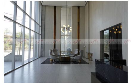 La oficina tiene una construcción de 106 metros cuadrados y está equipada con seguridad, elevador, clima central, luz, agua y cocina.