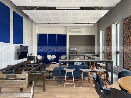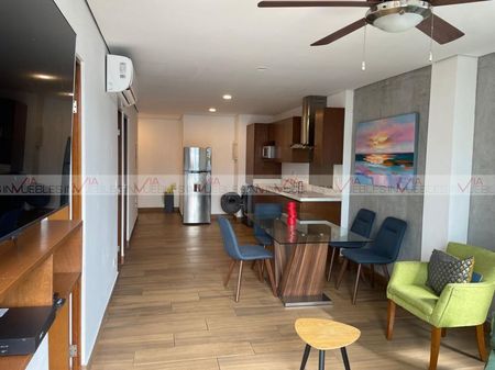 Hermoso departamento amueblado y equipado. Ubicación privilegiada en el centro de Monterrey frente a plaza la Purísima y a unas cuadras de Constitución y demás vías rápidas. El edificio cuenta con diversas amenidades como alberca, ludoteca, área de asadores, etc. Encontramos diferentes comercios en planta baja. No se permiten mascotas en el departamento.
