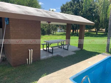 Venta de Hermosa Quinta cerca de Allende, N.L. a 1 km de carretera nacional, mide 2,898m2. Nor-Este 82.80 m2, al Nor-Oeste 42.80, al Sur-Este 85.00 m2 y al Sur-Oeste 32.80m2, con 155m2 de construcción la quinta cuenta on Casa, Capilla y cuarto de trabajador, con alberca de 4x7m más chapoteadero de 1.60x 2.50m con su equipo completo y su azulejo, cuenta con Pozo profundo equipado con bomba 3hp50mts de profundidad y 15mts de espejo de agua tanque de hidroneumático de 68 galones (257 litros) con abundante agua, amplios jardines más de 2,000m2 de césped con sistema de riego, barda perimetral con malla ciclónica con su base corrida de cemento, 5 luminarias tipo luz mercurial, arboles frutales, 2 Nogales, 2Aguacates, 2Naranjos,1Manzano y 1 Durazno, 7 encinos, 3tulias y más de 10 palmas Id Gvia: 112624
