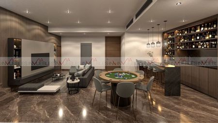 Rooftop: Área social exterior techada con barra de granito con preparación para refrigerador, tarja y asador, sala de Juegos con área de bar, de cubo de Id Gvia: 114500