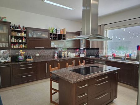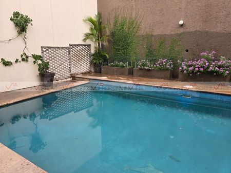 Excelente residencia con muy buenos acabados y amplios espacios para la comodidad de la familia. En el primer nivel la casa tiene recibidor, sala, salón de billar, baño de visitas, comedor, cocina, alberca y terraza. En el segundo nivel, tres cómodas habitaciones cada una con baño y vestidor, sala de estar familiar y biblioteca o salón para gimnasio, lavandería. Además, cuenta con un sótano, el cual, tiene un salón que puede ser utilizado como habitación, ya que tiene un baño completo, o bien puede ser utilizado como área de trabajo. Rincón de las Rosas es un exclusivo residencial ubicado en Carretera Nacional en la zona de Sierra Alta con facilidad de accesos a supermercados, hospitales y plazas comerciales. Id Gvia: 114125