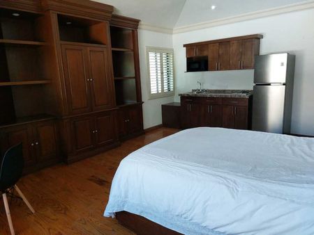 Departamento tipo loft de 50m2 con cama queen, amplio closet y baño completo, totalmente equipado y amueblado con cocineta.