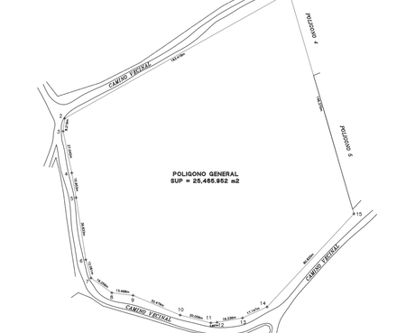 División en terrenos de 5,093 m² (cada uno con forma distinta, permitiendo elegir el que más te convenga)