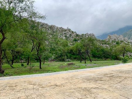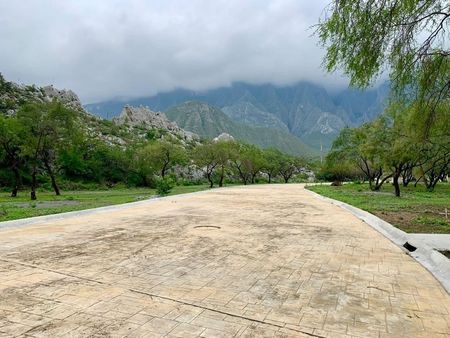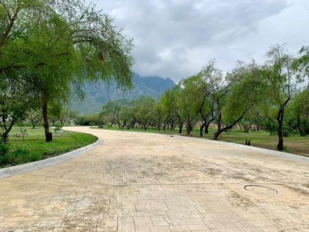 Hermoso terreno en Parque La Huasteca dentro de privada ya urbanizada, con barda, portón, caseta de seguridad y calles de acceso.
